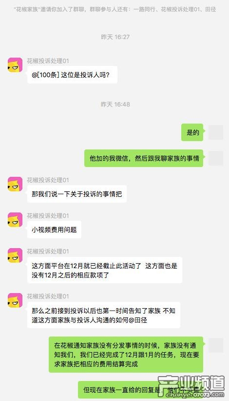 1月底,段小姐開(kāi)始向花椒方面進(jìn)行公開(kāi)投訴,稱(chēng)自己被拖欠12月與1月的收入?;ń贩矫娓嬷?,邀請(qǐng)抖音達(dá)人更新視頻的這個(gè)活動(dòng)已經(jīng)于12月份終止了,剩下的屬于第三方經(jīng)濟(jì)公司和抖音達(dá)人之間的事情。