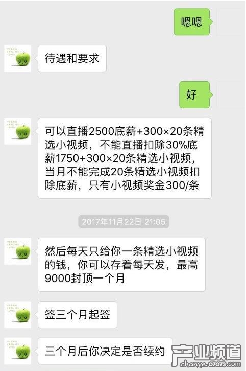 事實(shí)上,該數(shù)額已經(jīng)是被經(jīng)紀(jì)公司轉(zhuǎn)包后的價(jià)格了,并非初始價(jià)格。段小姐從其他工會(huì)(類(lèi)經(jīng)紀(jì)公司)處得知,花椒平臺(tái)給的費(fèi)用是按照抖音粉絲階梯劃分的,像段小姐這樣抖音粉絲超過(guò)100w的大號(hào),實(shí)際應(yīng)該是600元每條精選視頻,如果每月滿(mǎn)20條精選視頻,則底薪應(yīng)該是8000.而工會(huì)則抽走了一大半。