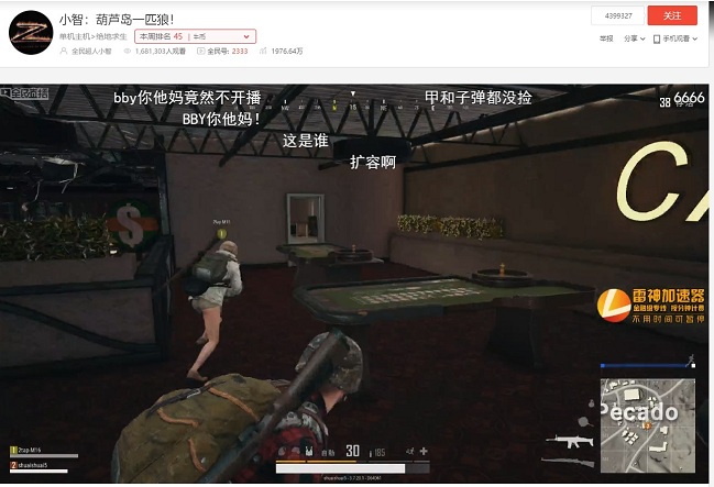 BBY是全民新晉的吃雞一哥,平時直播時間是中午到晚上,下午會休息下,而小智的直播時間就比較飄忽了,算得上是“緣分直播”。前幾天,小智突然在下午開播了游戲,并且從語音和麥里聽出了雙排的朋友是同平臺的BBY,而此時本該開播的BBY卻并沒有直播。很快BBY的粉絲就擠滿了小智的房間,紛紛質問BBY為什么停播。機智的小智粉絲就趁機調侃了一波:“智醬現在需要BBY幫他拉人氣了。”