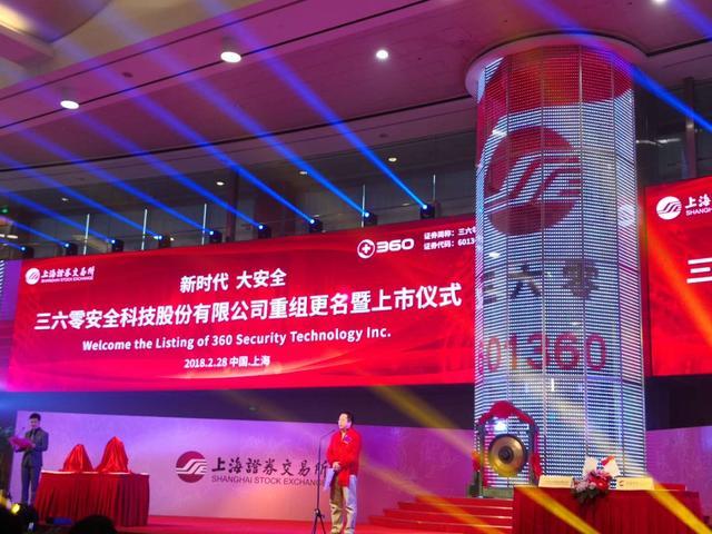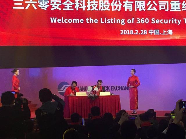 360公司董事長周鴻祎今日帶著自己的太太胡歡及360高管團(tuán)隊出席敲鐘儀式。這意味著360正式回歸A股市場。截至公告披露日,三六零科技有限公司100%股權(quán)已過戶至江南嘉捷電梯股份有限公司(其后更名為三六零安全科技股份有限公司;簡稱“三六零”)名下。