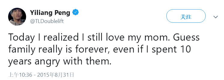 發(fā)生這場(chǎng)慘劇的時(shí)候,現(xiàn)TL俱樂(lè)部選手Doublelift(Yiliang Peng)正毫不知情的打著LCS NA春季賽的半決賽。雖然戰(zhàn)勝了對(duì)手成功晉級(jí)總決賽,但是勝利的喜悅并沒(méi)有持續(xù)太久,他很快得到了家庭發(fā)生巨大變故的消息,而這并不是愚人節(jié)的玩笑。