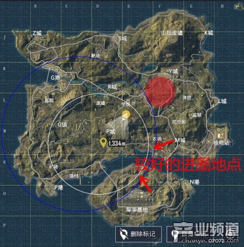盡量選擇大圈(藍(lán)色)與小圈(白色)相距最近的點(diǎn)進(jìn)圈,這樣做可以降低敵人從后方冒出的幾率,避免前后夾擊和被首先發(fā)現(xiàn)。