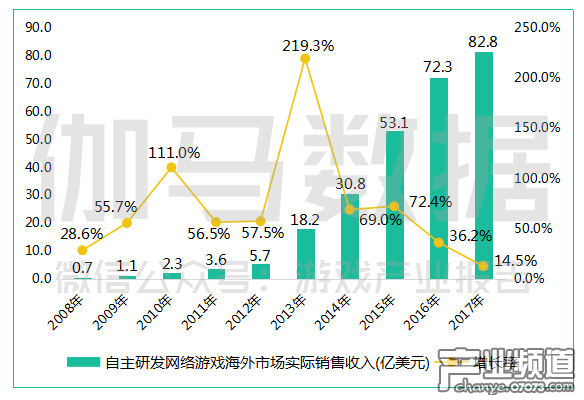 海外市場方面,報告顯示,今年中國自主研發(fā)網(wǎng)絡(luò)游戲海外市場實際銷售收入達82.8億美元,同比增長14.5%。