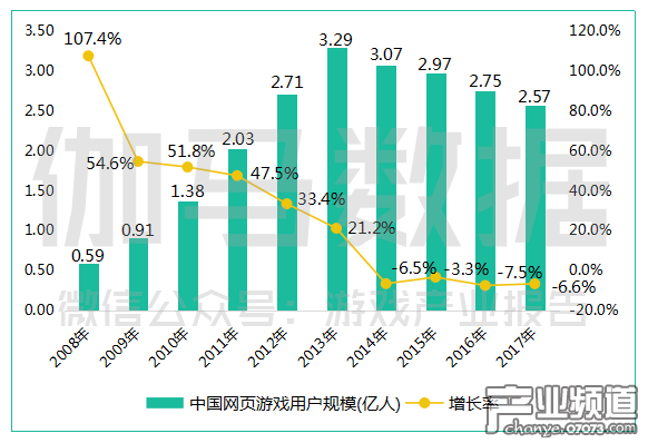 中國網(wǎng)頁游戲的用戶數(shù)量也印證了其正處于下降趨勢。報告顯示中國網(wǎng)頁游戲用戶規(guī)模達2.57億人,同比下降6.6%,而今年是網(wǎng)頁游戲用戶數(shù)量連續(xù)負(fù)增長的第四年。