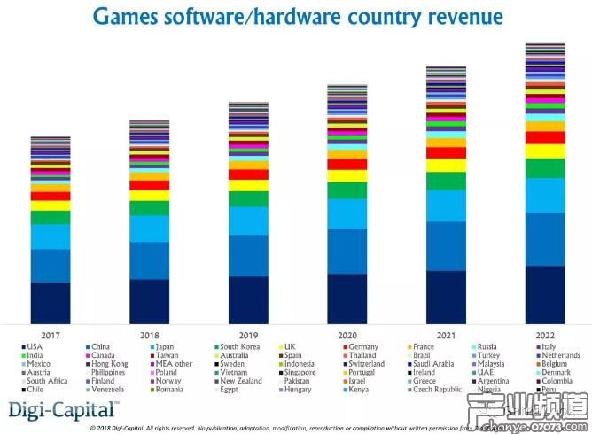 2025-2025年世界各國游戲軟硬件收入增長趨勢
