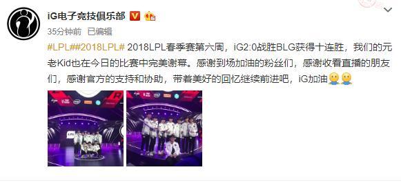 IG俱樂部:“我們的元老Kid也在今日的比賽中完美謝幕。帶著美好的回憶繼續(xù)前進吧,iG加油”