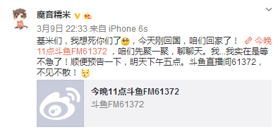 而之前解放大官人對魔音糯米也有過錯誤的判斷,就此事在微博上做過公開道歉,在昨晚魔音糯米的直播間斗魚大官人狂刷禮物,貢獻(xiàn)度達(dá)到了1180000,換算成魚翅的價格,禮物價值11.8萬RMB。