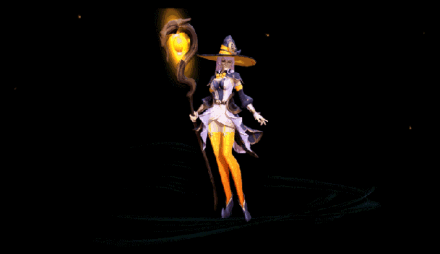 這款皮膚采用的是魔法森林中魔女的形象,一身充滿奇幻色彩的魔女服裝加上俏皮可愛(ài)的圓框眼鏡,再配上紫色的小妖怪,儼然就是一幅魔女姐姐的形象。
