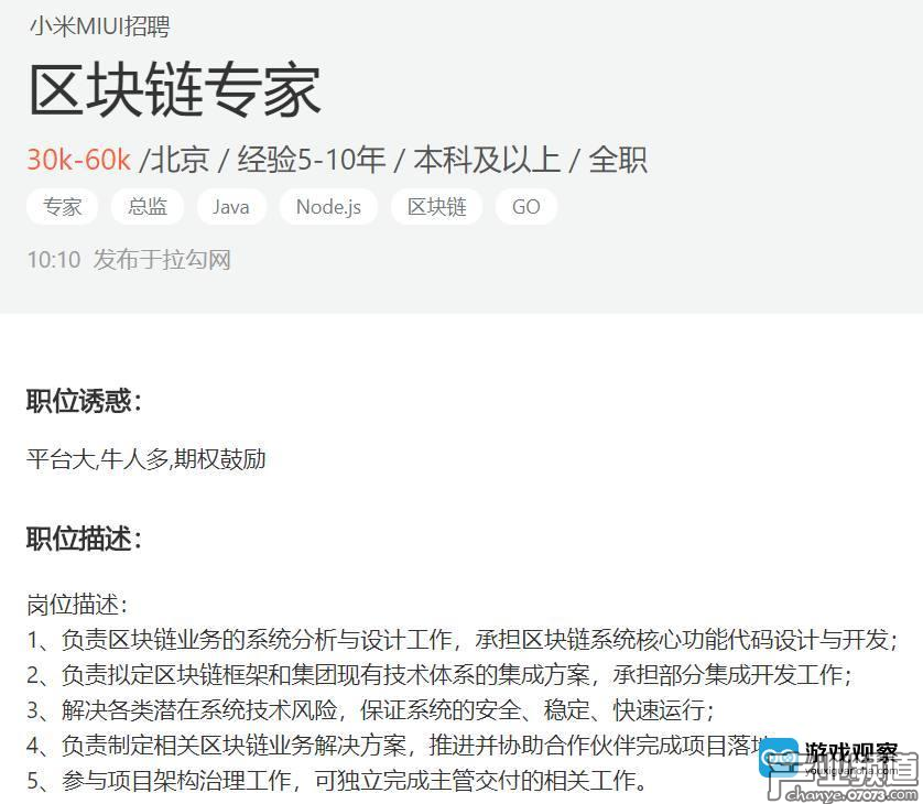 小米招聘暴露區(qū)塊鏈游戲計(jì)劃