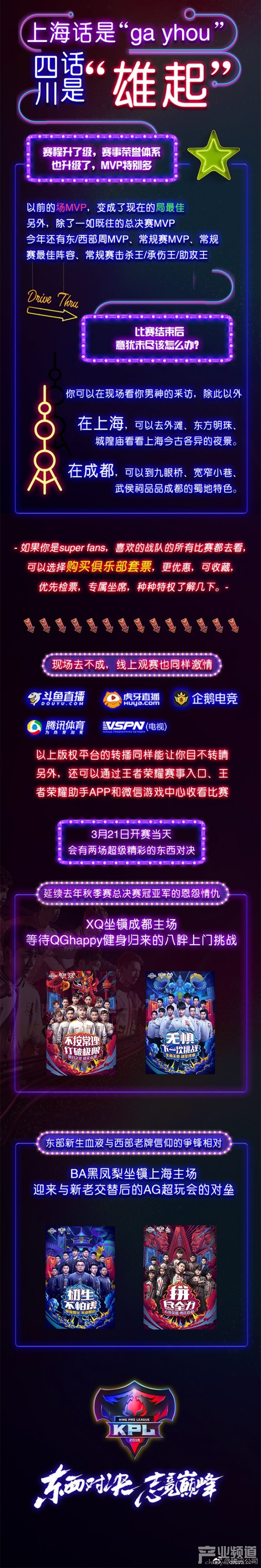 最后附上官方提供的KPL觀賽指南,《王者榮耀》的玩家們也記得不要錯過明天的揭幕戰(zhàn)哦!