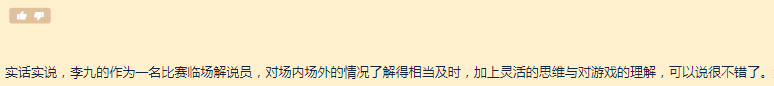 當(dāng)然,第一周的比賽的梗也是層出不窮,小編就不提什么“AG以為賣了個中單,其實是賣了個邊路”這些大家都看過的梗了。今天小編我要提一嘴在上周KPL比賽中一段李九的解說。