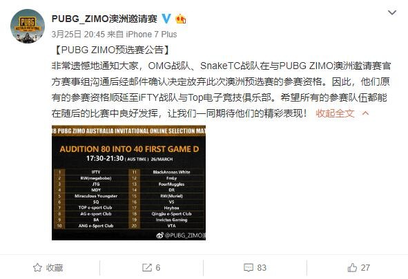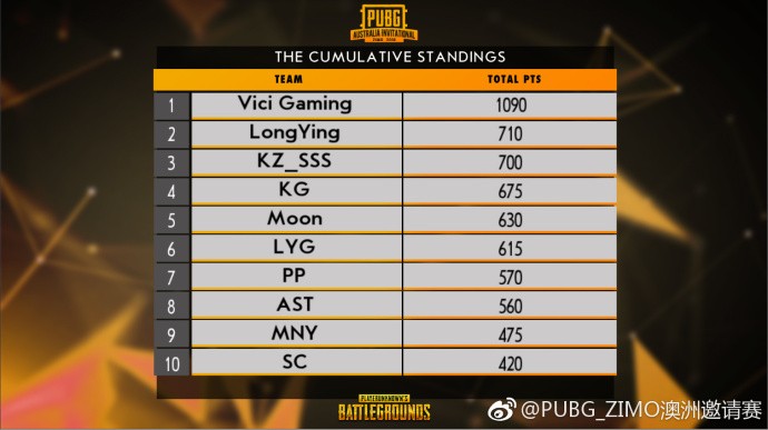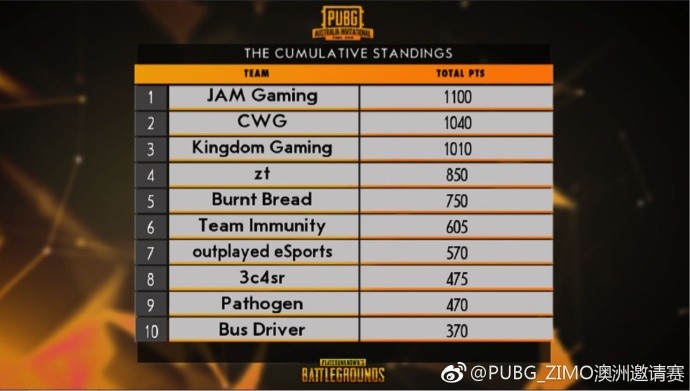 PUBG澳洲邀請(qǐng)賽預(yù)選賽已經(jīng)結(jié)束,80進(jìn)2的賽制讓預(yù)選賽變的非常殘酷,以至于OMG、Snake-TC戰(zhàn)隊(duì)無(wú)暇分身放棄了預(yù)選賽資格,D組小組賽是在全民直播上完成的,也確定了最后晉級(jí)的40支隊(duì)伍,其中有不少中國(guó)戰(zhàn)隊(duì),他們將在3月31日至4月7日參加40進(jìn)2的晉級(jí)賽,最終勝利的2支隊(duì)伍將參加澳洲邀請(qǐng)賽決賽。