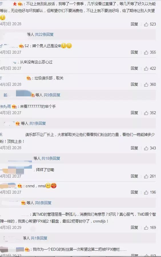 然而到比賽結(jié)束都并沒有見到萬眾期待的廠長的身影,賽后EDG的微博遭到粉絲們憤怒的圍剿,不少人認(rèn)為EDG故意炒作,利用廠長消費粉絲。說好了上場,結(jié)果卻只是煙霧彈,也就是說他只是EDG戰(zhàn)隊的噱頭,確實這場比賽因為廠長復(fù)出的消息獲得了很多人氣,可這樣的做法還是讓EDG粉絲,以及廠長粉絲很是傷心,讓許多期待已久的粉絲們感到非常失望。