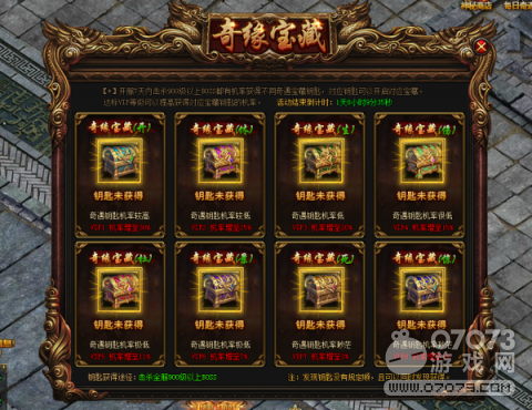 開服七天內(nèi)擊殺900級以上BOSS都有機(jī)會獲得不同的奇遇寶箱鑰匙,對應(yīng)鑰匙可開啟對應(yīng)寶藏