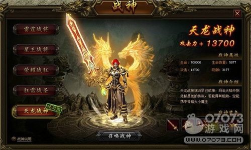 戰(zhàn)神等階越高,血量越高,攻擊也越強(qiáng),是挑戰(zhàn)BOSS時最為有利的保障。