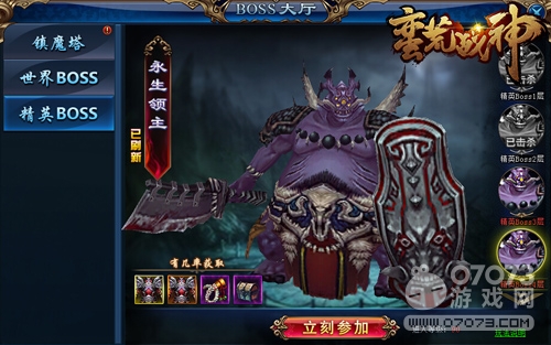 趁著上古封印破碎之際,魔王毀滅之神突襲人間,熾熱的巖漿仿佛可以將一切吞噬殆盡,突如其來的AOE大招分分鐘能秒殺一大波人,在進(jìn)攻的同時也要注意走位躲避技能!只要參與挑戰(zhàn)世界BOSS就能獲得獎勵,還有機(jī)會掉落稀有橙裝,BOSS等級越高,產(chǎn)出的裝備階數(shù)越高,趕緊加入戰(zhàn)斗吧!