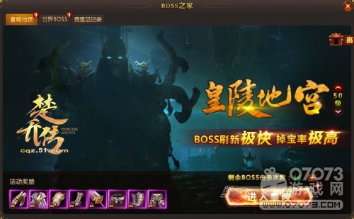 皇陵地宮神秘而又危險(xiǎn),強(qiáng)大的怪物隱匿于眾多幻影之中,更有兇猛的BOSS等著你前去挑戰(zhàn)。準(zhǔn)備好的玩家通過點(diǎn)擊BOSS之家的圖標(biāo)選擇皇陵地宮標(biāo)簽即可選擇是否進(jìn)入皇陵地宮?;柿甑貙mBOSS眾多,相比較其他地圖而言擊殺較為容易,同時(shí)產(chǎn)出大量珍稀裝備,是個(gè)刷裝備的好地方。