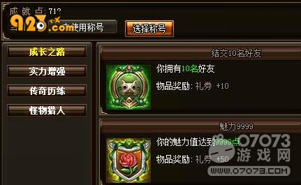 在這四大成就的每個分類中都有不少成就等你達成,其中一些成就還帶有稱號,只要完成成就,順便就能獲得923yx《烈火戰(zhàn)神》稱號。在達成某些成就,大家領取成就獎勵后即可使用該稱號哦!
