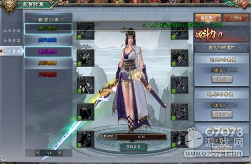 一旦進入,首先看到的是品質套裝,藍、紫、橙三種顏色代表三種不同的品質。任何一種顏色的套裝收集到一定件數(shù)并穿戴整齊,便可以額外產(chǎn)生套裝加成屬性效果。至少也需要達成三件套,如果能達成10件那將又是另外一番景象。悄悄告訴你,目前傲天刺秦秘史小編已經(jīng)達成紫品套裝10件,防御和戰(zhàn)斗力又提升好高一截。