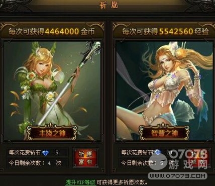 大天使之劍練級最簡單的練級方法當然就要說祈愿系統(tǒng),祈愿當然就是向女神進項祈禱,如果獲得經(jīng)驗我們可 以向智慧女神雅典進行祈禱愿望,每次花費鉆石20個點擊祈愿成長,即可獲得七位數(shù)的經(jīng)驗獎勵,開通VIP會員還能獲得更多的祈愿次數(shù),錢不是很多,但是卻能增加大量經(jīng)驗,建議每天將祈愿次數(shù)全部點完,動動手指就能獲得經(jīng)驗。