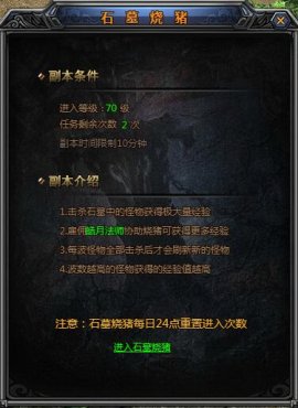 2、玩家每天可以完成2次石墓燒豬任務(wù),由于每次任務(wù)的時(shí)長為10分鐘,建議玩家在需要歇一會的時(shí)候可以選擇來做這個任務(wù)。