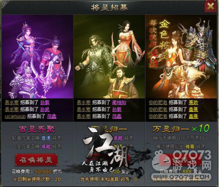 在《江湖》中,將靈可以提升玩家屬性,輔助玩家戰(zhàn)斗。每個(gè)將靈都有屬于自己的鎮(zhèn)守位類(lèi)型,分為四種玄武、白虎、朱雀、青龍。每個(gè)類(lèi)型的鎮(zhèn)守位最多可同時(shí)上陣1名將靈,即最高可同時(shí)上陣4名將靈。 每個(gè)將靈上陣后,該將靈的屬性將會(huì)附加到主角身上,所附加屬性值=所有上陣將靈屬性值之和。將靈沒(méi)有固定的等級(jí)成長(zhǎng)數(shù)值,通過(guò)將靈培育功能來(lái)分配潛力點(diǎn)提升將靈屬性。 不同將靈間有著各自的緣分機(jī)制,有緣分關(guān)聯(lián)的將靈同時(shí)上陣時(shí),將可激活相應(yīng)的緣分屬性加成和將靈組合技能?!督?2月8日15:00刪檔封測(cè)!趕快加入吧~