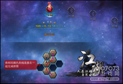 七魄沒(méi)有了怎么辦?重鑄啊!!!?在《江湖》中,七魄分別指的是:氣魄、力魄、中樞、靈慧、天沖、英魄、精魄。玩家通過(guò)收集魄靈可激活魄穴來(lái)獲得屬性獎(jiǎng)勵(lì),并利用魄穴完成七魄解謎游戲來(lái)開(kāi)啟新的魄圖。七魄解謎游戲是一個(gè)碎片連線的拼圖小游戲,將魄穴碎片上相同顏色的線相連貫通即可完成拼圖?!督?2月8日15:00刪檔封測(cè)!趕快加入吧~