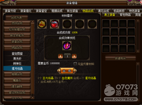 當然了,看到這里小伙伴們一定很想問猩月結晶去哪找呢?不用擔心,這不,系統物品合成又增加猩月結晶合成,猩月結晶可通過物品合成由2個圣光結晶及1個血色魔珠合成獲得,也可通過運營活動獲得。血色魔珠暫時只能通過運營活動獲得。