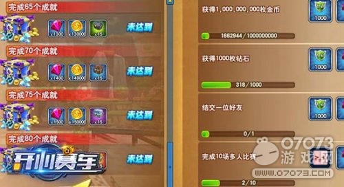 目前的成就系統(tǒng)中,擁有近百個豐富有趣的成就任務(wù),不但有收集金幣、收集鉆石、結(jié)交好友、提升等級、參加比賽這些普通成就,還有諸如“大光頭吃拉面”、“妖王開著齙牙兔兜風(fēng)”、“用甩蔥少女開全民音波”等等有趣的特殊成就。