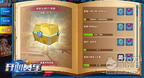 在《開心賽車》游戲主界面的左側(cè),點擊任務(wù)與成就圖標(biāo)即可開啟成就任務(wù)界面。在成就任務(wù)中,玩家可以查看目前已完成或未完成的所有任務(wù),并且可以查看完成這些成就任務(wù)后所能獲得的獎勵。