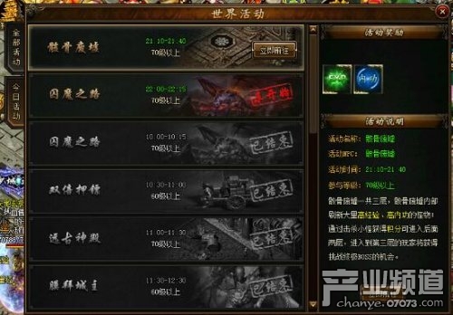 作為每天重要的世界活動,骸骨廢墟的活動時間是在晚上的9:10~9:40。需要提醒傲天攻沙加強版小伙伴們的是:等級必須在70級以上才有資格參與,時間只有半個小時,一定要把握好時機喔。