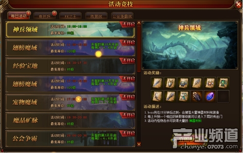 這是一個(gè)奇跡般的領(lǐng)域,可以掉落各種神器材料,想換上金色的神裝嗎,那就快來(lái)參加吧~活動(dòng)開啟后可以點(diǎn)擊小地圖左下方的引導(dǎo)進(jìn)入,也可以從活動(dòng)競(jìng)技界面進(jìn)入。