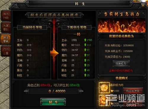 玩家們可以通過兌換修為或是使用修為丹來提升修為值,達到一定的要求之后即可進行提升。轉生等級越高,可穿戴的裝備等階越高。此外也可以兌換修為,等級有盈余的玩家們達到80級以上可以削減一級等級來兌換大量的修為值,但每日最多只能夠兌換3次。