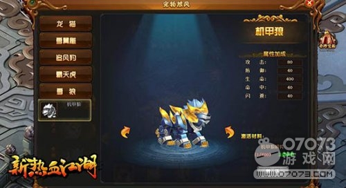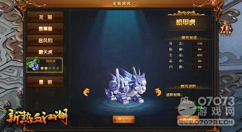 在騰訊《新熱血江湖》的寵物界面中,點(diǎn)擊“披風(fēng)”圖標(biāo)即可開啟寵物披風(fēng)系統(tǒng),游戲內(nèi)的五種寵物都各有專屬不同的披風(fēng),而機(jī)甲系列披風(fēng)只有追風(fēng)豹、霸天虎、雪狼三種寵物擁有。
