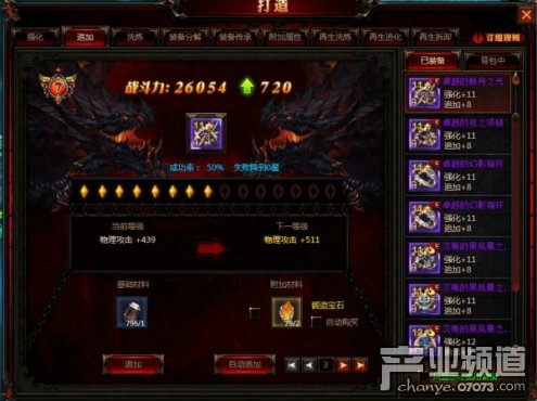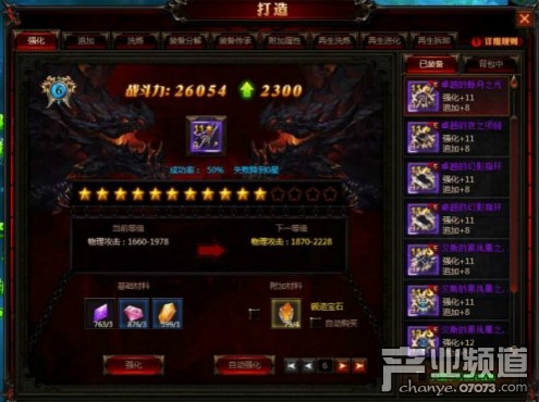 玩家身上或者背包里的任何一件裝備都可以進(jìn)行強化,隨著強化等級的提高所需要的寶石種類和數(shù)量也會有所變化。裝備得到了強化之后原本的屬性也會得到提升,而且隨著裝備強化等級的提升,每次強化成功裝備屬性提升的幅度也會逐漸加大。