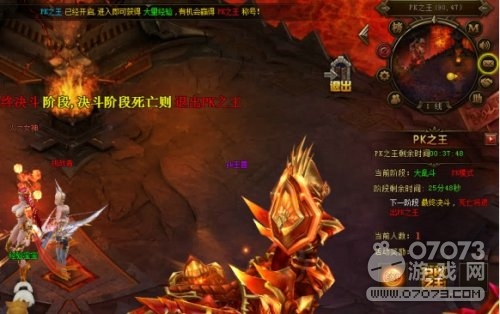 PK之王是一個激情的活動,強者會活到最后。在活動期間,游戲界面右邊的引導會顯示當前的階段,通過“~”鍵可以快速選中附近敵對成員,祝大家玩的開心。