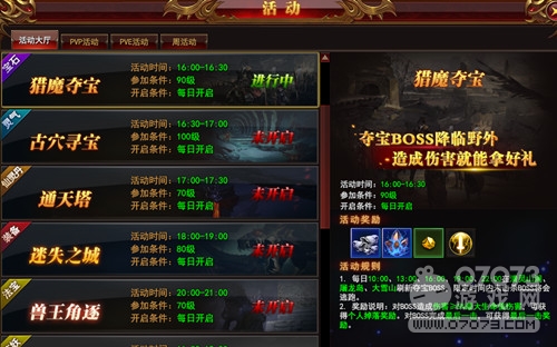 當(dāng)玩家達(dá)到90級(jí)后,即可在每日的特定時(shí)間參與到獵魔奪寶的活動(dòng)當(dāng)中。清靈山澗、屠龍島、大雪山等等地方都會(huì)在對(duì)應(yīng)的時(shí)間段刷新各種各樣的BOSS。當(dāng)對(duì)BOSS造成足夠的傷害后,便可獲得個(gè)人掉落獎(jiǎng)勵(lì),如果對(duì)BOSS造成最后一擊,還可以獲得額外的獎(jiǎng)勵(lì)。