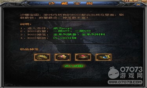 沙藏寶閣是5217yx《梁山傳奇》的VIP副本,游戲當(dāng)中的所有BOSS都會(huì)出現(xiàn)在里面,并且BOSS刷新速度快,數(shù)量也眾多,掉落更豐富!既然是VIP副本,玩家想要進(jìn)入的話就必須成為VIP才行,玩家只要充值800元寶就能成為VIP玩家,首充任意金額還有絕世神兵、直升一級(jí)和成長(zhǎng)禮包等大禮,讓你起跑速度快人一步!
