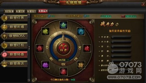 聯(lián)盟轉(zhuǎn)盤是一種類似百加樂一樣的活動,點擊開始抽獎可以獲得屬性獎勵。生命值、內(nèi)力值、攻擊、防御、暴擊、敏捷、暴擊傷害、破防傷害一共八大屬性可以獲得,看你抽中的是命還是攻呢?