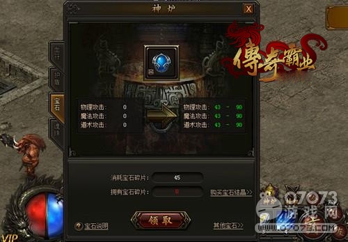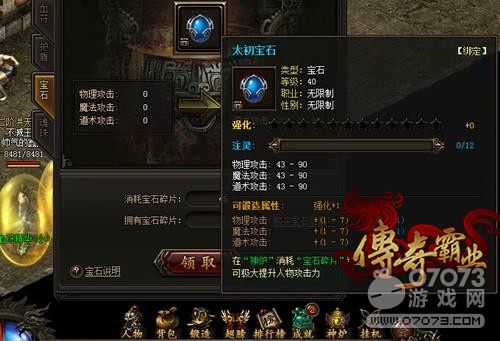 蘿卜玩《傳奇霸業(yè)》中的寶石并不像其他游戲那樣被劃分成各種屬性,不同的職業(yè)還需要不同的寶石搭配。在《傳奇霸業(yè)》中,寶石玩法極大地簡化,它們被分為12個等級,等級越高的寶石能夠提供更多的屬性加成,極大提升人物的物理攻擊、道術(shù)攻擊和魔法攻擊。