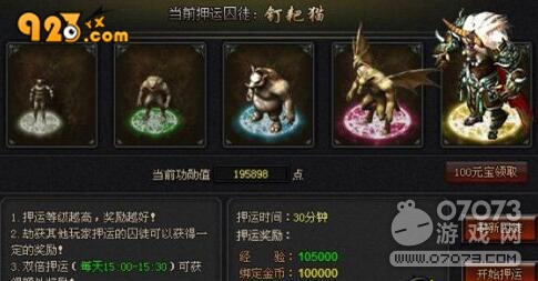 在923yx《七殺》中,每人每天可以完成三次押鏢任務(wù),押鏢任務(wù)分為五個(gè)等級(jí),最高級(jí)的是牛魔王。大家可以使用囚徒刷新符來(lái)刷新任務(wù)等級(jí),或是直接使用100元寶領(lǐng)取牛魔王等級(jí)的押鏢任務(wù)。押鏢有時(shí)間限制,領(lǐng)取鏢車后,大家要在30分鐘之內(nèi)把鏢車?yán)侥康牡?,否則會(huì)直接丟失鏢車和本次的押鏢機(jī)會(huì)。