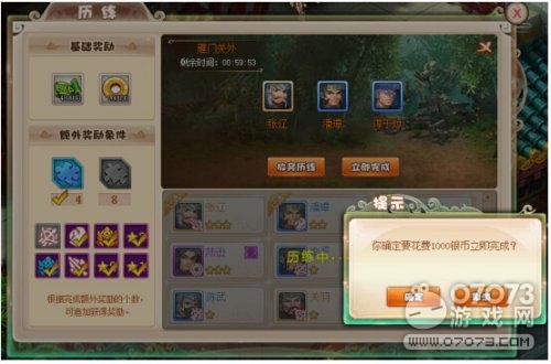 重置任務(wù)并不會重置正在進(jìn)行中的任務(wù)或者完成后沒有上交的任務(wù),歷練任務(wù)進(jìn)行過程中可耗時等待任務(wù)完成獲取獎勵,也可以選擇銀幣立即完成歷練。歷練結(jié)束后,將獲得武將經(jīng)驗(yàn)、銅幣、不同品質(zhì)的武將碎片等獎勵。