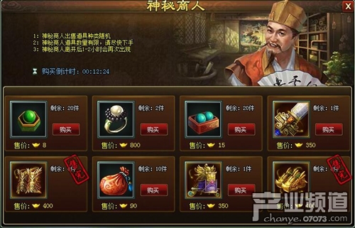 神秘商人小八字山羊胡,手拿折扇,高冠博帶,一副精明的樣子。點擊人物,便可進(jìn)入商店。
