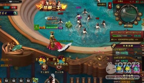 那小編就以帝王身份看看開發(fā)組如何為我們精心布置的華清池吧。在這里美女肯定是不能少的,后宮美女如云,一定需要一個(gè)不錯(cuò)的地方和美人一起嬉戲。傲天我是皇小編頭頂“佳麗三千”的頭銜進(jìn)入華清池與佳麗們來一場魚水之歡,君臨后宮,雨露均沾。