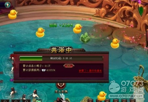于是小編點(diǎn)擊了“共浴”,一場海天盛筵的派對就此展開。傲天我是皇游戲屏幕上出現(xiàn)了許許多多的小黃鴨,一旦鼠標(biāo)箭頭落在小黃鴨身上,就會有不到的驚喜發(fā)生。每每觸碰到一個(gè)小黃鴨就會收獲2500多的銀兩,想要多,就得看誰鼠標(biāo)滑動(dòng)得快喔。