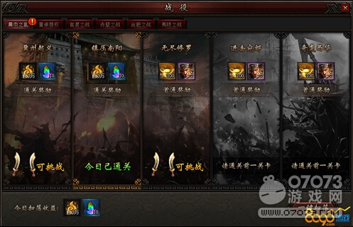 游戲中的戰(zhàn)役副本按照三國時期著名古戰(zhàn)場為背景,每個古戰(zhàn)場又以五段戰(zhàn)事為副本,使玩家們在體驗游戲樂趣的同時,又能重溫那段英雄輩出的璀璨時代。戰(zhàn)役系統(tǒng)將按玩家等級依次解鎖,首次通關(guān)獎勵可獲取武將碎片與綁定元寶,是集齊武將的重要來源。