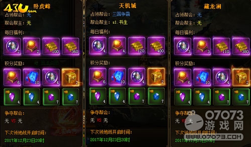 另外幫會戰(zhàn)場積分每滿1000,幫主和副幫主還可到大本營軍事處兌換我方全體BUFF哦!但是活動結(jié)束BUFF就沒有啦!參與領(lǐng)地戰(zhàn)幫派還會獲得金丹、美人技能書、華佗魂石、十萬金幣和各種寶石,想要得到它們就來43u《皓月屠龍》參與領(lǐng)地戰(zhàn)吧!
