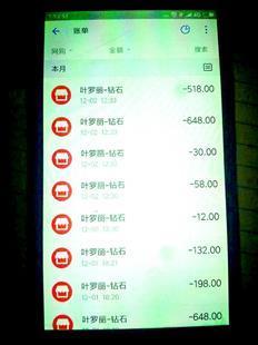 發(fā)現(xiàn)孩子偷偷花錢買裝備還是一次偶然。張新文說,12月2日中午,妻子見女兒正在玩手機(jī),便問孩子在干什么,誰知女兒竟將手機(jī)藏在身后,這引起妻子的懷疑。妻子拿過手機(jī)突然發(fā)現(xiàn)支付寶發(fā)來的支付成功信息,細(xì)看才知道,孩子當(dāng)天花了1200多元,用于購買一款名為“葉羅麗”的手機(jī)游戲“裝備”。張新文隨后和支付寶客服聯(lián)系得知,原來孩子從11月12日就開始玩這款游戲,總共購買9054元的游戲“裝備”,錢都支付給了北京瓦力網(wǎng)絡(luò)科技有限公司。