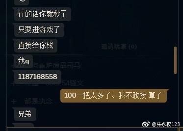 這應(yīng)該是直接排到了演員局,這人想用錢(qián)直接收買(mǎi)TBQ讓他進(jìn)游戲后閃退,而TBQ直接隔空喊話(huà)拳頭官方人員文森,對(duì)于演員的話(huà)其實(shí)只要有人舉報(bào),官方稍微審查一下之前的游戲記錄就能查出。