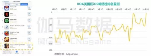 《阿瓦隆之王:龍之戰(zhàn)役》(King of Avalon)是由點(diǎn)點(diǎn)互動(dòng)運(yùn)營(yíng)發(fā)行的一款策略類游戲。游戲目前已經(jīng)在海外市場(chǎng)上線,美國(guó)、日本、加拿大等幾個(gè)全球主要的移動(dòng)游戲市場(chǎng)表現(xiàn)出色,最高月流水已超過數(shù)百萬美元。在美國(guó)市場(chǎng)的最高排名達(dá)到APP暢銷總榜第十名,游戲類產(chǎn)品僅居于《Pokemon GO》、《Candy Crush Saga》、《Clash of Clans》三款知名暢銷產(chǎn)品之后,而且整體排名仍處于上升趨勢(shì)中。